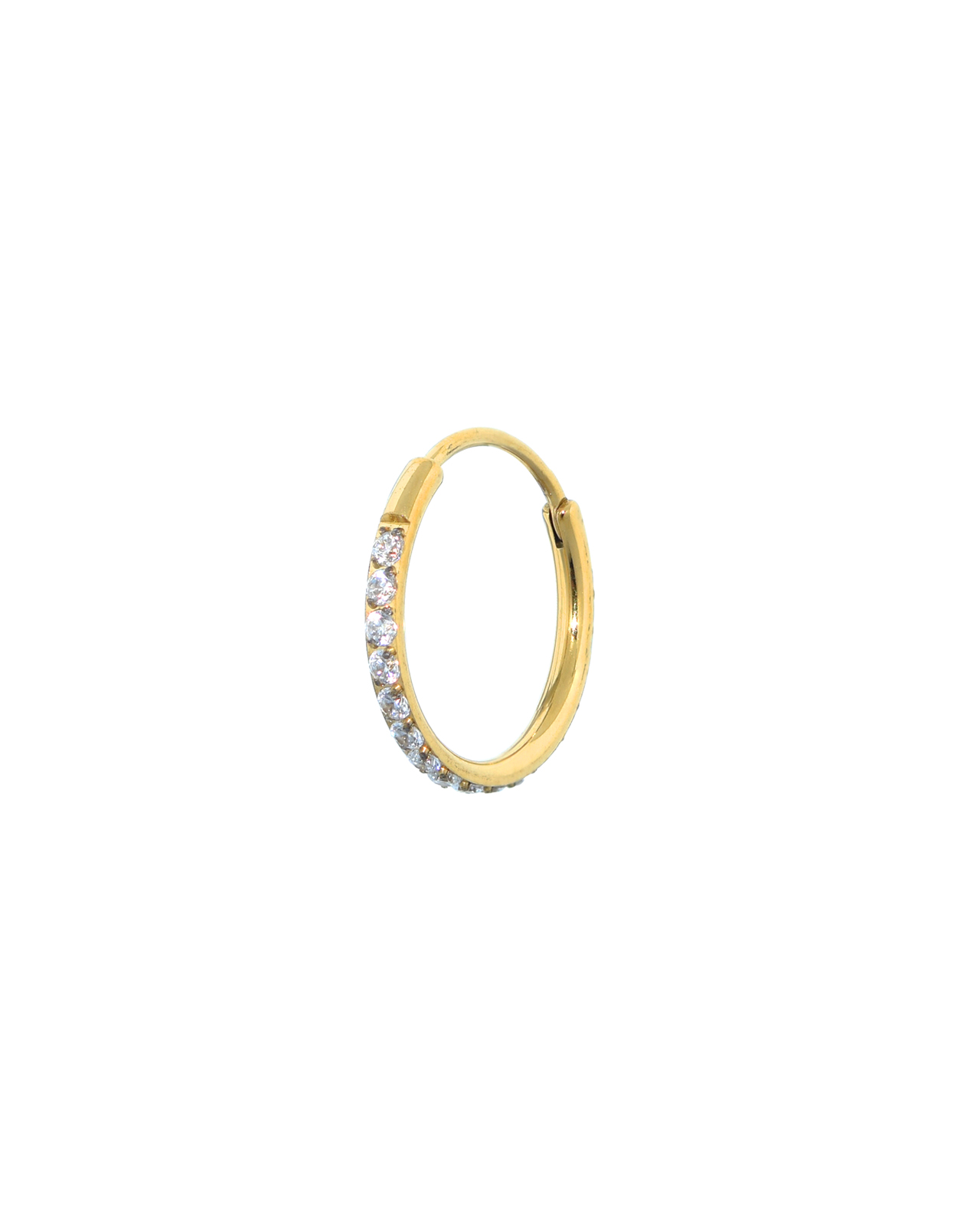 De Hoop Piercing 12 mm van Juli Dans Jewels is een stijlvolle en tijdloze click ring die perfect past bij iedere ear stack. Deze elegante hoop piercing heeft een diameter van 12 mm en is afgewerkt met subtiel fonkelende zirkonia steentjes, wat zorgt voor een verfijnde en luxe uitstraling.
